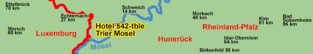 Wittlich (40 km), Bernkastel-Kues (47 km), Morbach (48 km), Traben-Trarbach (58 km), Birkenfeld